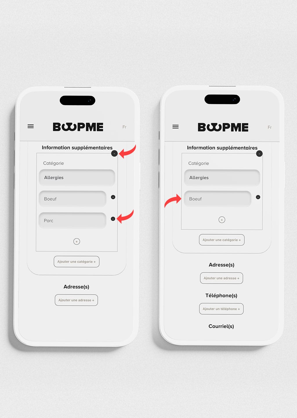 Si vous souhaitez supprimer une information ou une catégorie, cliquez sur (-) à côté de ce que vous souhaitez supprimer.